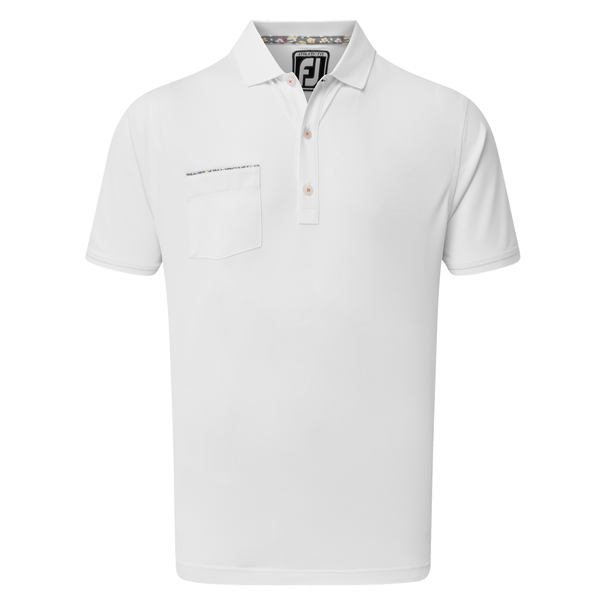 Solid colour body with floral lisle print trim on chect pocket and collar piping
